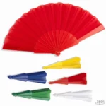 Abanico plegable de 14 brazos fabricado en plástico y tela, ideal para eventos, campañas y activaciones de marca. Su diseño ligero y compacto lo convierte en un artículo promocional funcional, fácil de transportar y altamente visible para personalización. Marca visible de hasta 12 cm mediante serigrafía. Abanico de 14 brazos en plástico y tela. Medidas Abierto: 23 cm x 43 cm Marca: 12 cm / Screen Nota:  Por la naturaleza del material y su manipulación en el momento de la producción y empaque, el cuerpo plástico del abanico puede llegar a presentar algunas rayas que son normales.