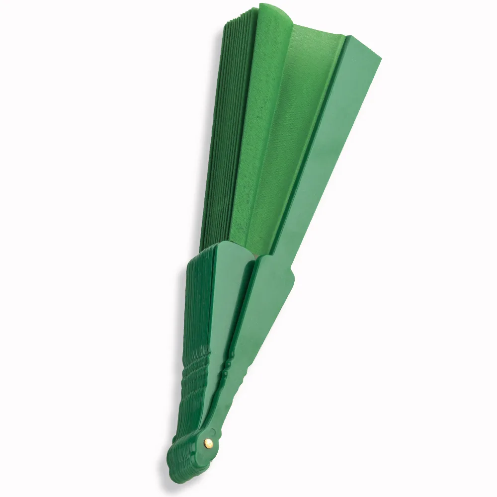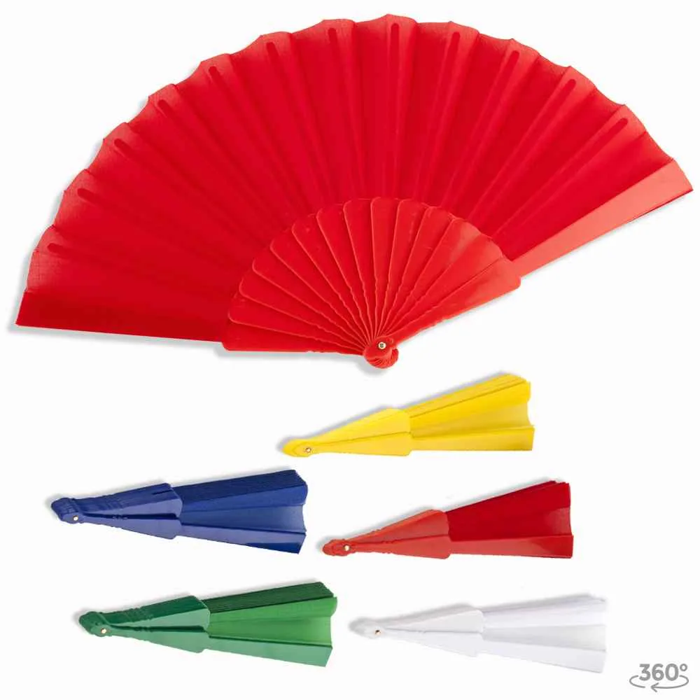 Abanico plegable de 14 brazos en plástico y tela. Ideal para eventos y activaciones de marca. Personalizable con serigrafía de hasta 12 cm. Ligero, práctico y fácil de llevar.