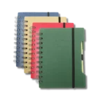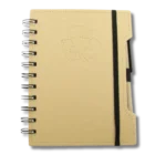 Agenda ecológica en cartón reciclado de 16 x 13 cm, incluye esfero ecológico. Personalización con tampografía o screen. Ideal para campañas promocionales sostenibles. Empaque: 120 unidades por caja.