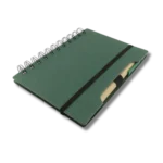 Está elaborada en cartón reciclado e incluye un esfero ecológico, lo que la convierte en una opción sostenible y práctica para empresas que buscan reforzar su identidad con responsabilidad ambiental.