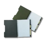 Esta agenda está fabricada en cartón reciclado, acompañada de un esfero ecológico, lo que la convierte en una opción sostenible y funcional para empresas comprometidas con el medio ambiente.