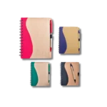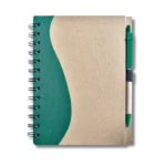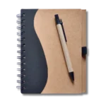 Está fabricada en cartón reciclado, lo que la hace una opción sostenible. Incluye un esfero ecológico con cuerpo personalizable, ideal para transmitir valores de responsabilidad ambiental.