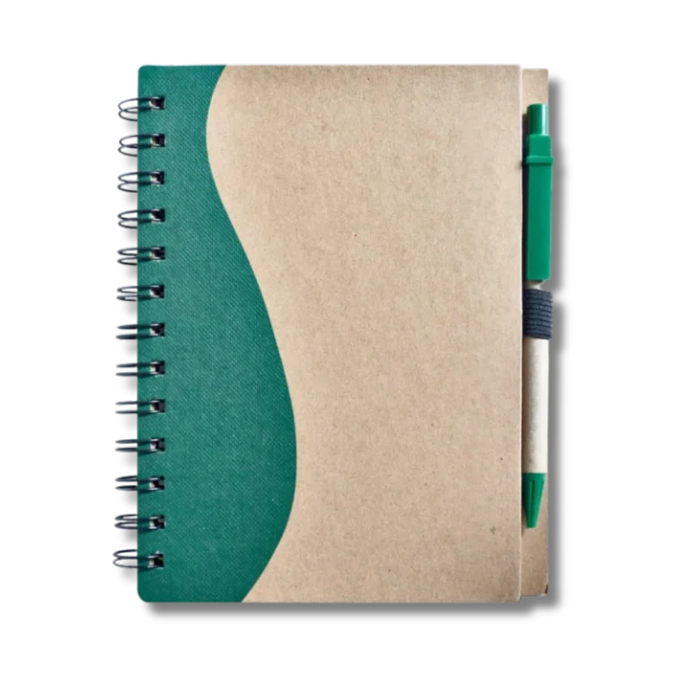 Las agendas ecológicas con esfero es una alternativa funcional y responsable con el medio ambiente, ideal para empresas que desean transmitir valores sostenibles a través de productos promocionales. Fabricada en cartón reciclado, esta agenda de 18 x 13.8 cm incluye un esfero ecológico y ofrece diversas áreas de personalización mediante tampografía o impresión en screen. Perfecta para campañas corporativas, ferias o kits de bienvenida. A continuación, se detalla su ficha técnica: