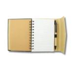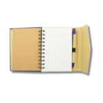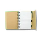 Esta agenda está hecha de cartón reciclado y se acompaña de un esfero ecológico. Es una alternativa ideal para empresas que buscan transmitir responsabilidad ambiental con estilo y funcionalidad.