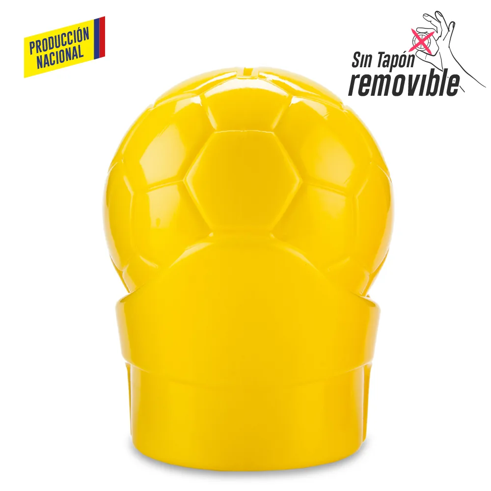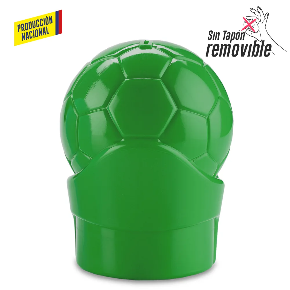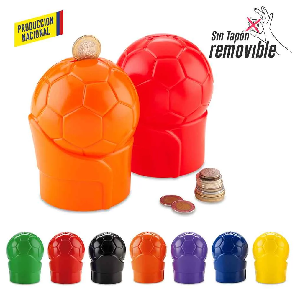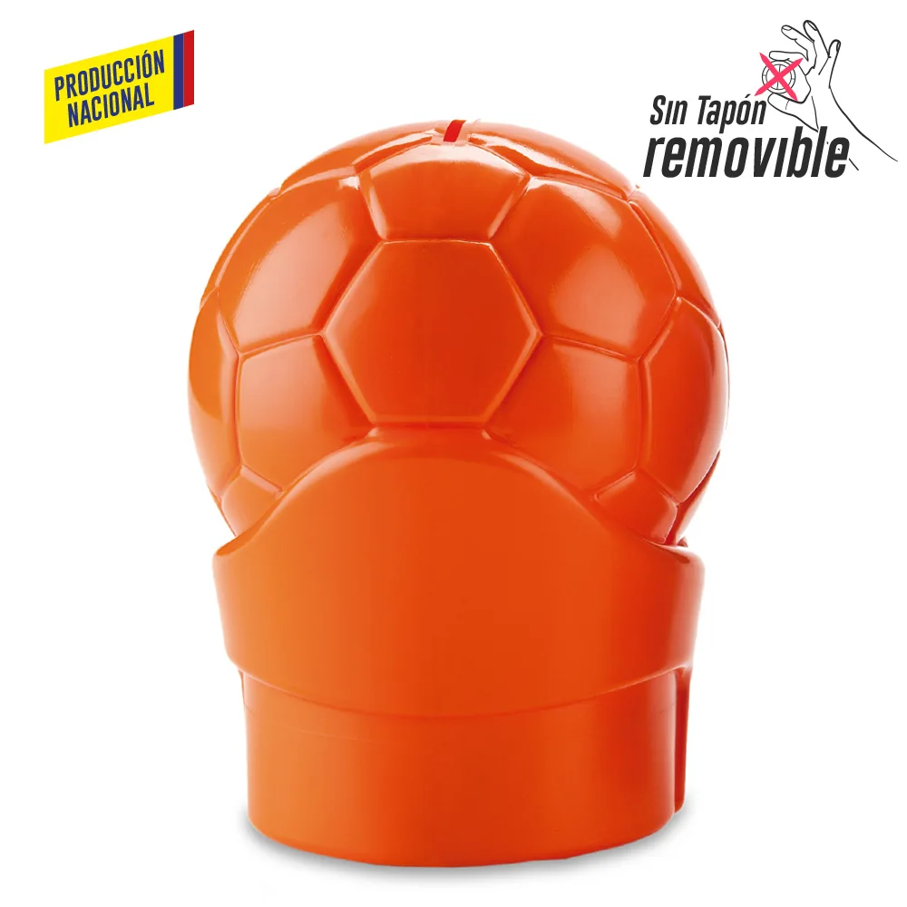Alcancía con forma de balón fabricada en polietileno de alta densidad mediante soplado, un producto nacional pensado para fomentar el ahorro de forma divertida y resistente. Ideal para campañas institucionales, educativas o eventos deportivos. Su estructura sólida no cuenta con tapón removible, lo que promueve el compromiso con el ahorro. Puede personalizarse mediante tampografía con un área de hasta 5 cm para logos o mensajes institucionales.