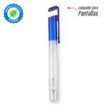 Integra (1) bolígrafo con tapa, (2) soporte portacelular, (3) limpiador de pantallas en la punta de la tapa y (4) compartimento tipo spray recargable; además incluye mina adicional. Ideal como bolígrafo promocional corporativo funcional.