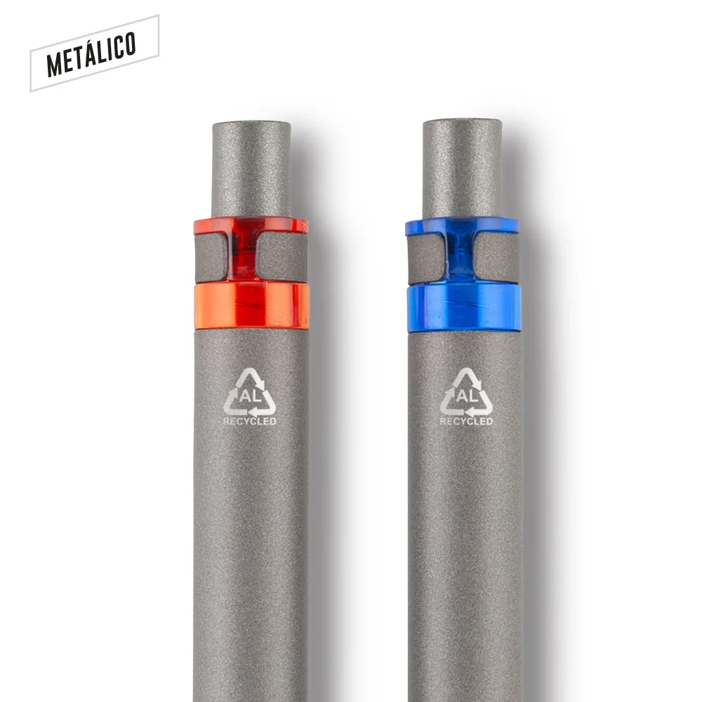 Significa que está fabricado con aluminio recuperado y reciclado después de su uso, lo que lo convierte en un bolígrafo publicitario sostenible para empresas.