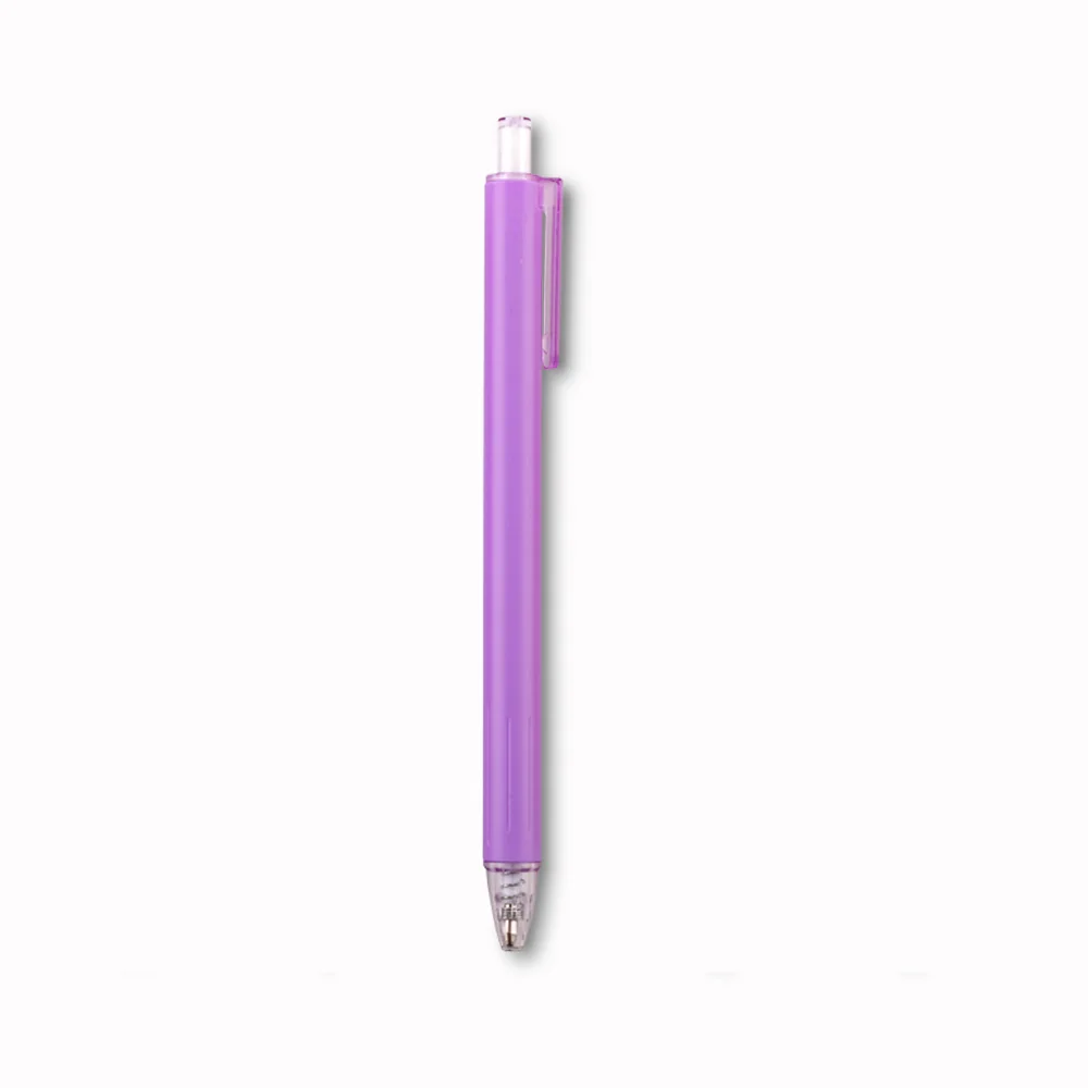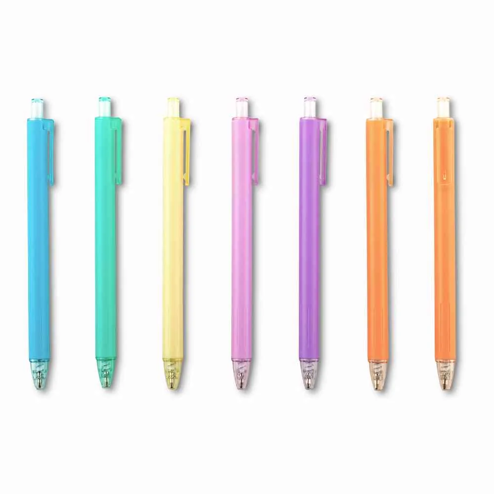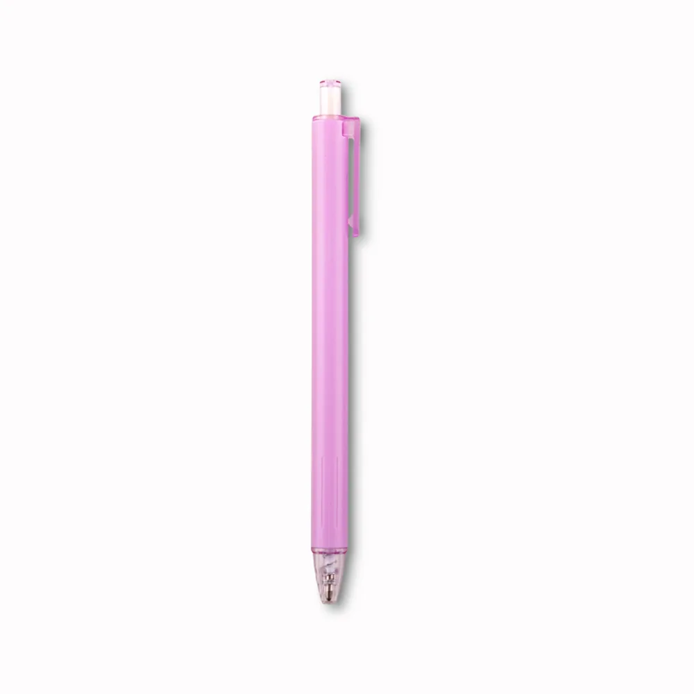 Bolígrafo promocional plástico en tonos pastel con mecanismo push, ideal para merchandising corporativo y regalos publicitarios. Mide 14.5 cm y se personaliza con tampografía (4 cm).