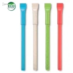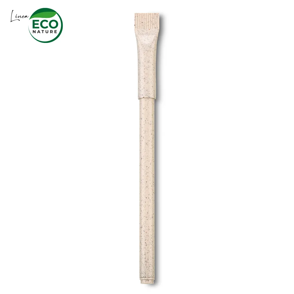 Incluye una mezcla con fibra de trigo (aprox. 50%–60%), lo que lo convierte en una opción de bolígrafo publicitario eco para empresas y campañas sostenibles.