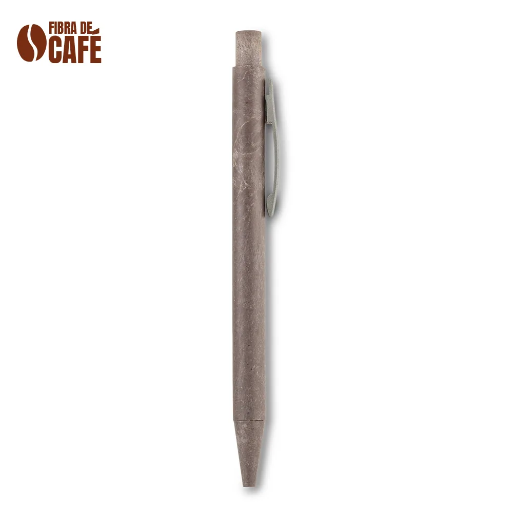 Bolígrafo elaborado en plástico ABS con fibra de Café. Mecanismo Push. El porcentaje de material ecológico tiene un promedio de biodegradabilidad de 2-3 años después del fin de su vida útil.