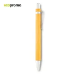 Bolígrafo con partes plásticas, clip metálico y barril en bambú. Mecanismo push.
