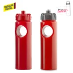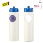 Está elaborado en polietileno, un material ligero y resistente, ideal para botellas promocionales de uso diario en oficina, gimnasio o actividades al aire libre.