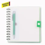 La Libreta Kadens es una excelente opción de producción nacional, ideal para uso institucional, académico o corporativo. Cuenta con 80 hojas internas, cubiertas en polipropileno resistente que le brindan durabilidad y una presentación moderna. Incluye el Bolígrafo Summit, práctico y funcional para el día a día. Es compacta, ligera y permite personalización mediante tampografía en un área de hasta 4.5 cm. Una alternativa eficiente para regalos promocionales hechos en Colombia.
